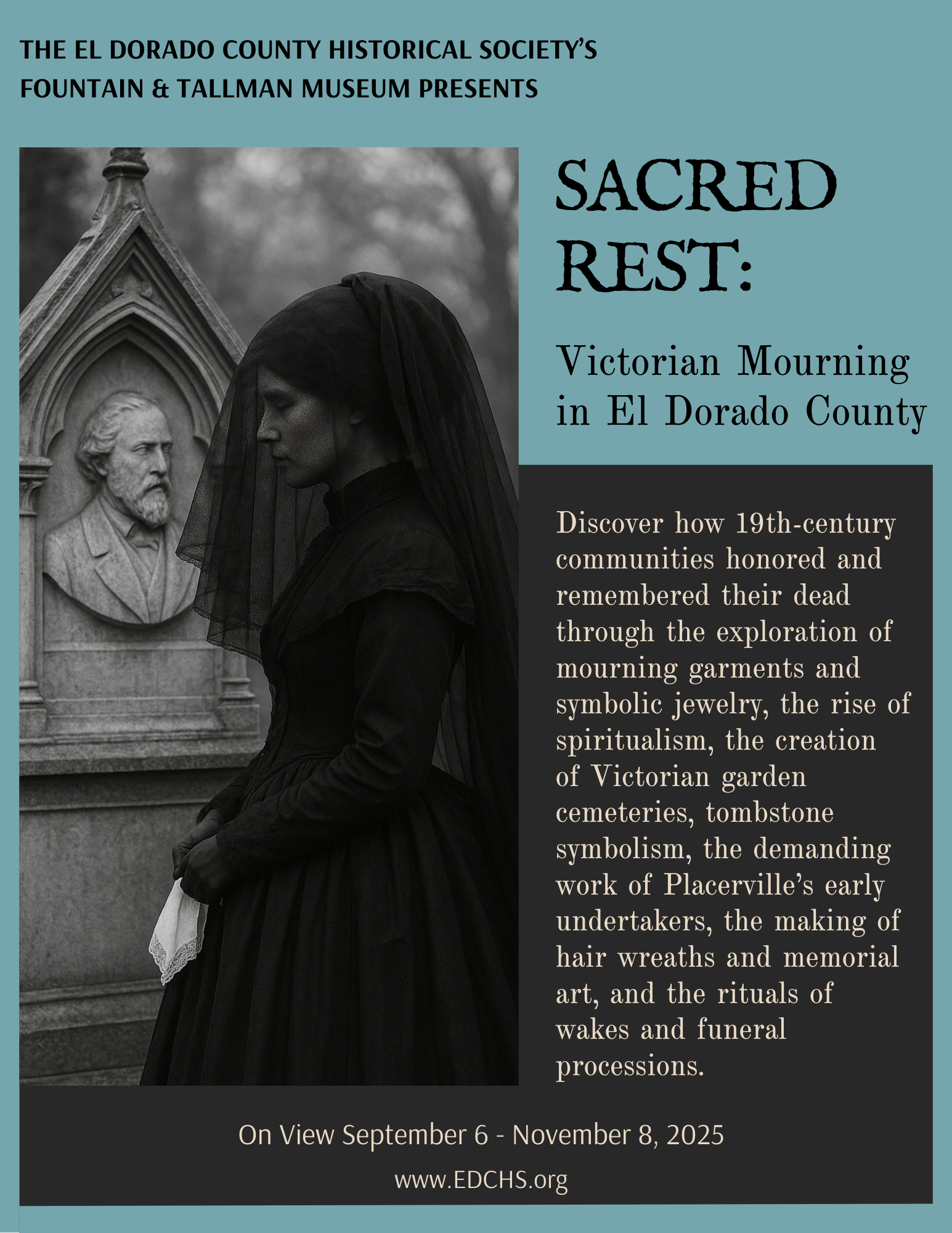 *All ticket sales are donations, the net proceeds of which support the EDCHS in its mission to honor the people who came before us by rescuing, preserving, researching, and displaying El Dorado County’s rich history, and to ensure that its significance will be appreciated for generations to come. Donations also help to support the operations and maintenance of the Society’s historic Fountain & Tallman Museum. If you would like to donate a different amount, please call us at our Fountain & Tallman Museum.
